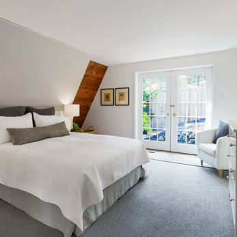On this level are two of the three bedrooms which share the angular roofline, specific only to an A Frame. There’s a full bath on this level as well. Upstairs, the primary bedroom has tremendous volume and a wall of glass, again capturing the lush landscape. There is ample closet storage in this bedroom as well as the adjacent bath. Across the hall, a bonus room which looks down into the living space. This room could be an additional bedroom, as there is a terrific sleeping loft, or use it as a killer home office.