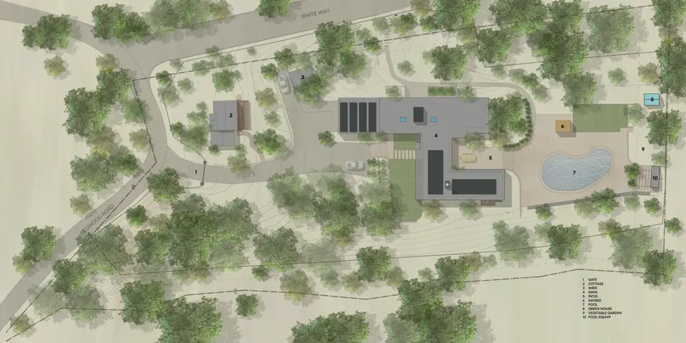 Welcome to 419 Redwood Road, an impeccably re-imagined mid-century modern compound. This iconically designed home is sited on nearly an acre and half of private, usable land in the hills of San Anselmo. The main house originally dates back to 1950 but was completely remodeled and expanded in 2010 by the current architect owners. This single-level home spreads out over 2,800’ sq. ft. of interior space. Enter through the wide, pivoting front door and be immediately surrounded by an appealing mix of glass, wood and concrete. The floor-to-ceiling windows that wrap the home create a seamless connection between the indoors and nature.